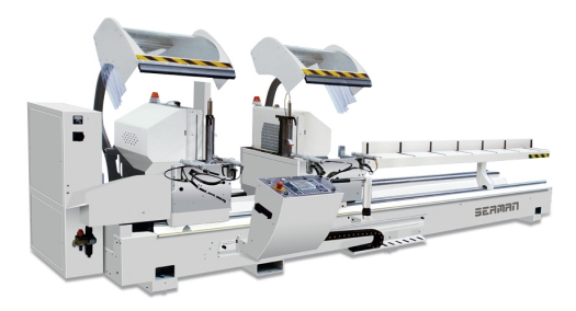 雙頭鋸能將型材按需要的尺寸和角度裁取,常用截取角度為45°和90°角度精確,效率更高