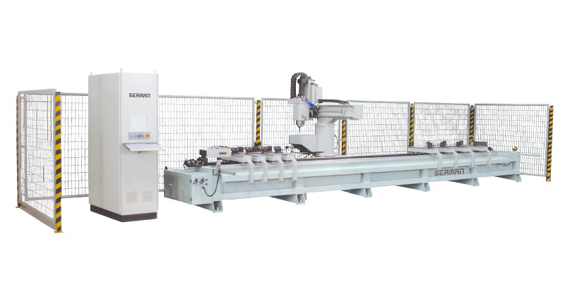 我公司為適應(yīng)軌道交通鋁型材和各種工業(yè)鋁材的加工,專門(mén)開(kāi)發(fā)設(shè)計(jì)的一款高檔機(jī)、電、氣一體化設(shè)備。該型加工中心剛性足、速度快,主軸具有轉(zhuǎn)速高和低速較大扭矩的特點(diǎn),具有很高的加工效率,并且根據(jù)軌道交通鋁型材的特點(diǎn)做了適應(yīng)性的特殊設(shè)計(jì),使得該型設(shè)備可以較好的滿足軌道交通鋁型材各種長(zhǎng)度工件的高效加工。在軌道交通行業(yè),該類型設(shè)備現(xiàn)在已經(jīng)拓展成為系列產(chǎn)品,該型號(hào)設(shè)備是主要產(chǎn)品之一。